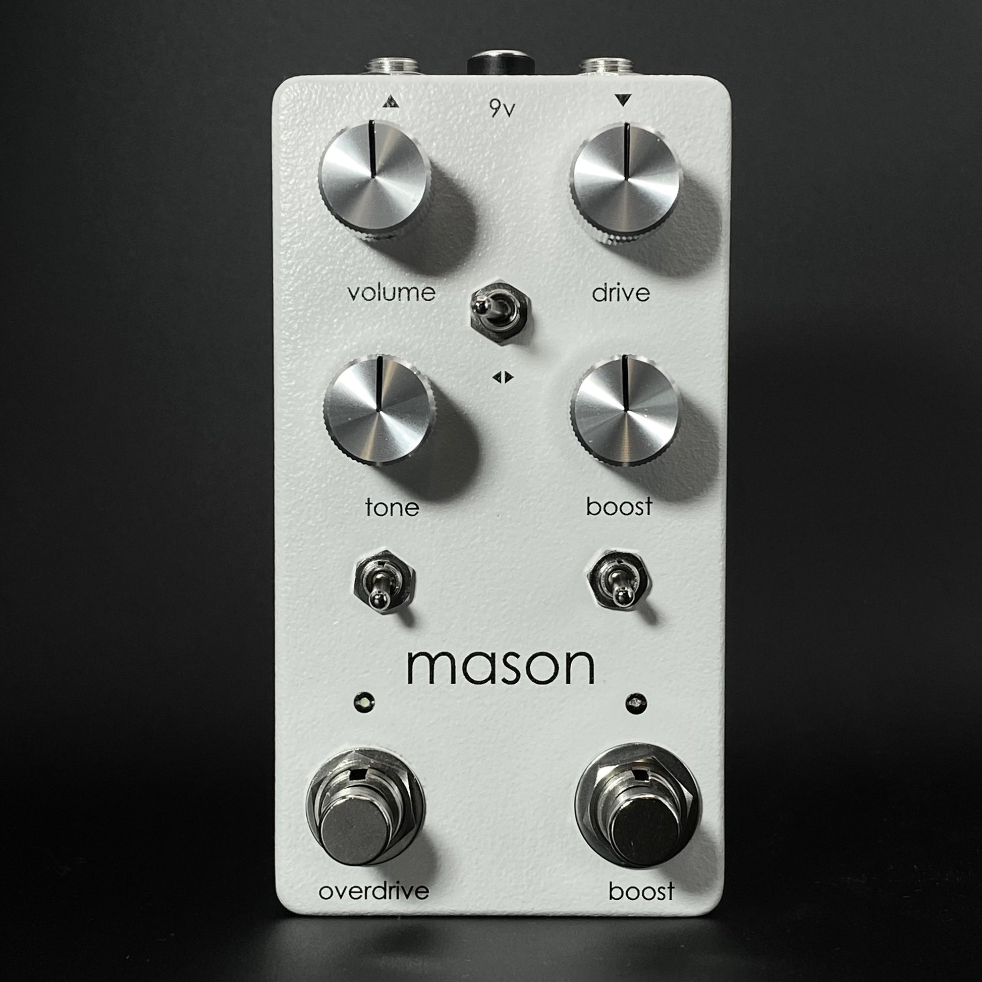 The boost in the Mason is the secret weapon of this pedal. In the down position of the toggle, it is a full-frequency boost that has been tastefully tailored to bring some high mids and top grit and sparkle to give your guitar that special sauce. Flip the toggle up to get into treble boost territory that makes your guitar sing, cut through the mix, or and clarity and top end.